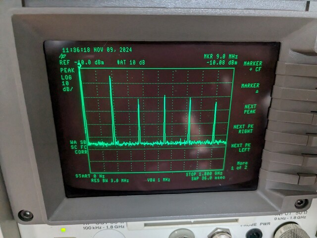 When I bought my HP 8591E spectrum analyzer it came with a warning:It works — but only if you leave Option 130 (the narrow-bandwidth IF) disconnected. Oh and it has a strange glitch in the amplitude – as the previous owner told me.