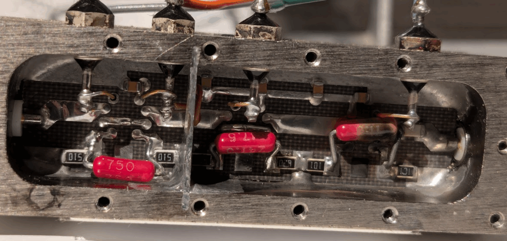 Clearly, the 10 dB and 20 dB sections were toast. Upon opening the dark scars where clearly visible in the attenuator.